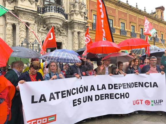 La Unión de Jubilados y Pensionistas de UGT Andalucía (UJP-UGT Andalucía), junto a representantes de CCOO Andalucía, ha mantenido este martes una reunión con la secretaria general del PSOE de Andalucía y candidata a la presidencia de la Junta, María Jesús Montero, en la sede del partido, en la que han trasladado la preocupación por la grave situación que atraviesan las personas mayores y dependientes en la comunidad autónoma.