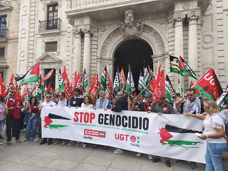 UGT y CCOO Andalucía se concentran contra el genocidio en Gaza y en solidaridad con el pueblo palestino