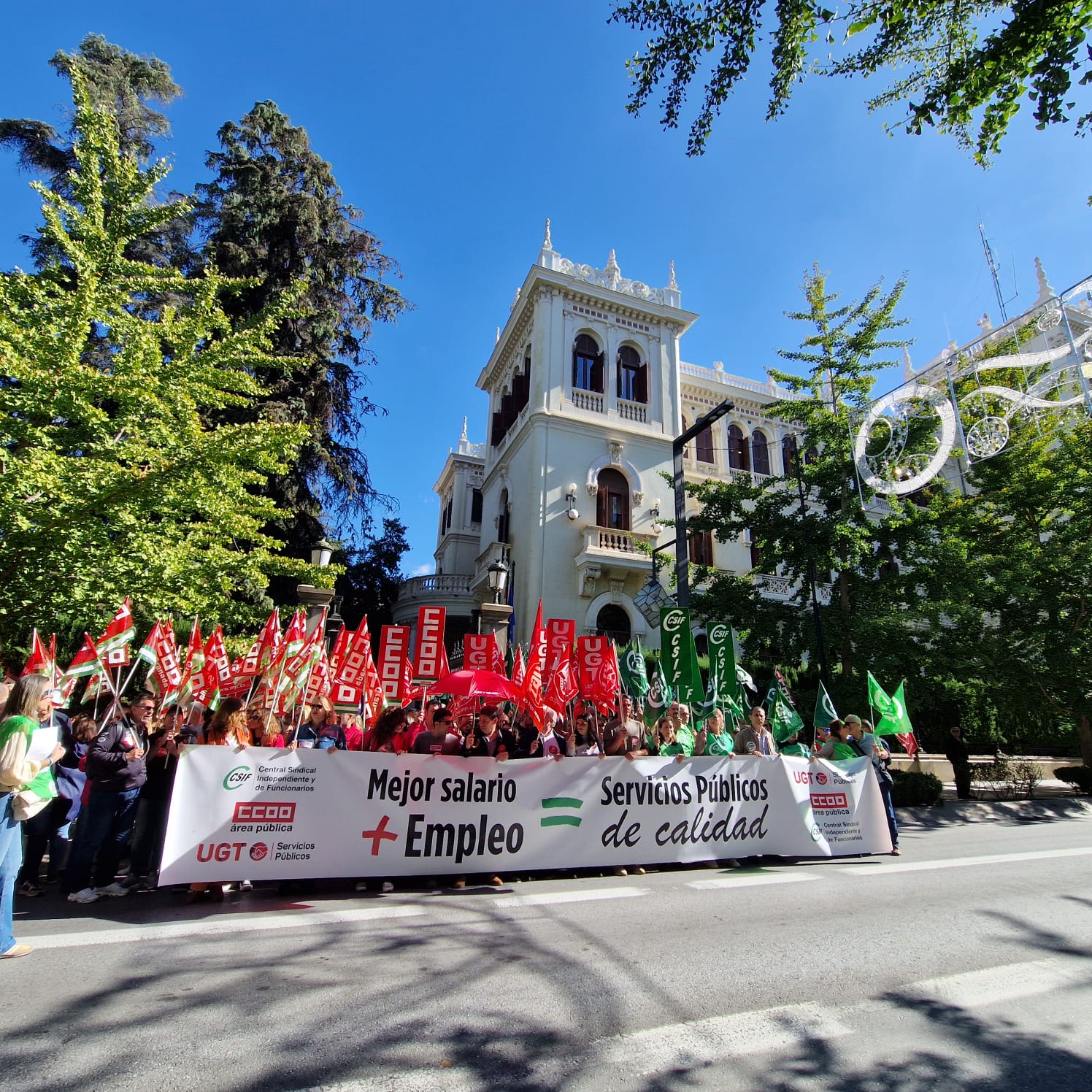 27/10/2025 – UGT. junto con CCOO y CSIF, ha anunciado este lunes, 27 de octubre en rueda de prensa, el inicio de las movilizaciones para denunciar el bloqueo de la negociación colectiva por parte del Ministerio de Función Pública, que impide un nuevo acuerdo salarial que beneficie a los empleados y empleadas de todas las administraciones públicas, entre otras reivindicaciones pendientes. Se trata de una concentración, este 30 de octubre, a las 12:00h., en la entrada de la Subdelegación del Gobierno en Granada. Esta movilización es sólo el inicio de una campaña de protestas que se extenderá hasta final de año, sin descartar la huelga. Leer más.