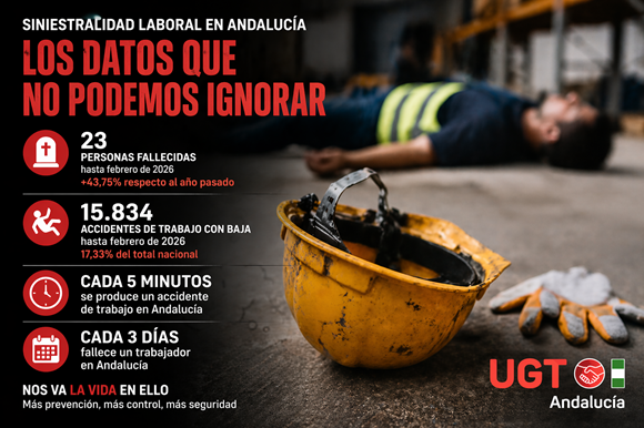 El sindicato ha alertado del preocupante incremento de la siniestralidad laboral en la comunidad autónoma, tras registrarse 23 personas trabajadoras fallecidas en accidente de trabajo hasta el mes de febrero de 2026, lo que supone un aumento del 43,75% respecto al mismo periodo del año anterior.