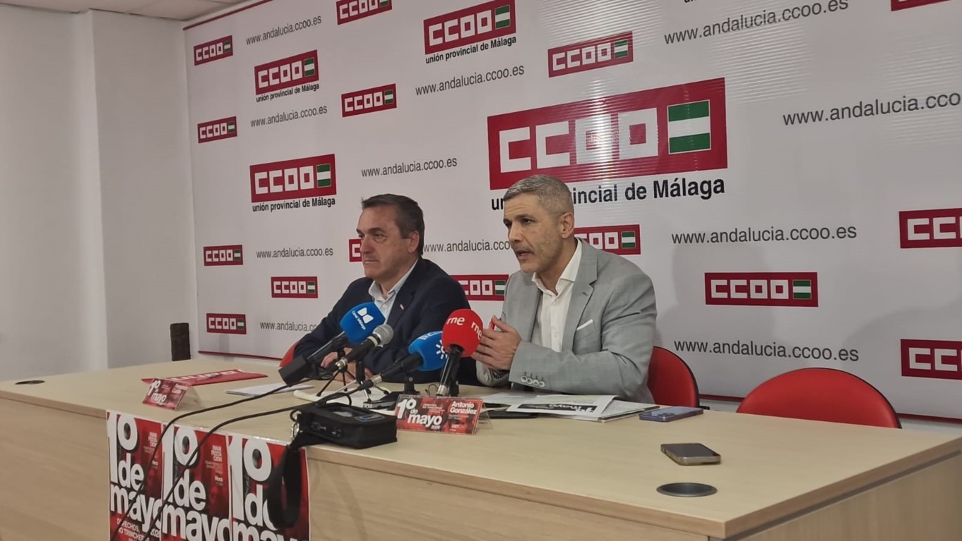 El Secretario General de UGT Málaga, Antonio González, y el secretario general CCOO, han ofrecido este jueves una rueda de prensa conjunta para presentar las movilizaciones del próximo Primero de Mayo, cuyo acto central se celebrará en Málaga.