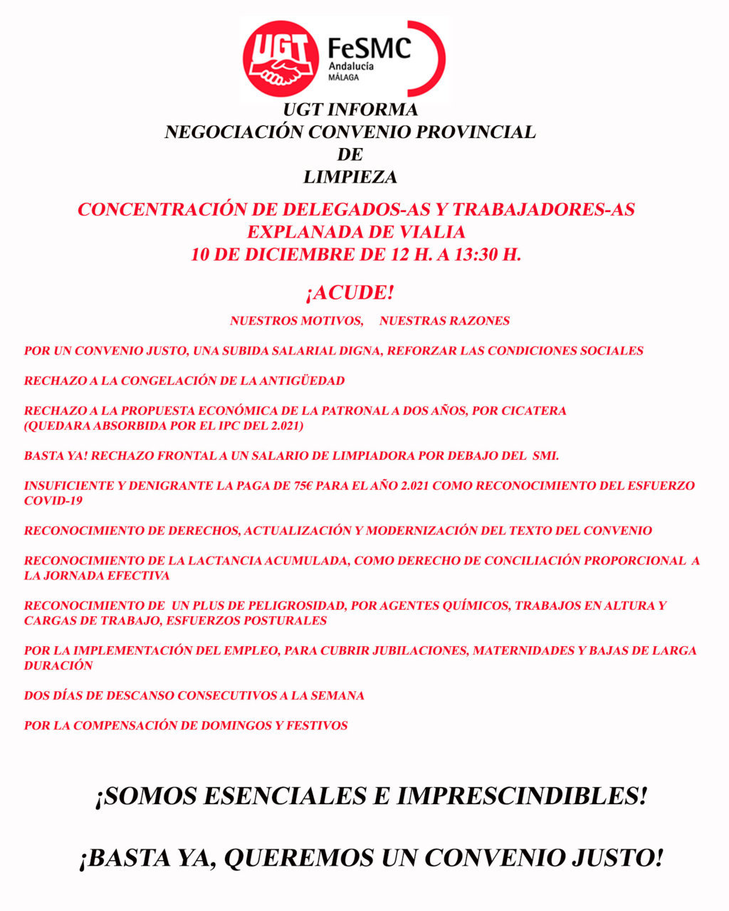 FeSMC UGT Málaga se concentra junto a la plantilla del grupo Inditex