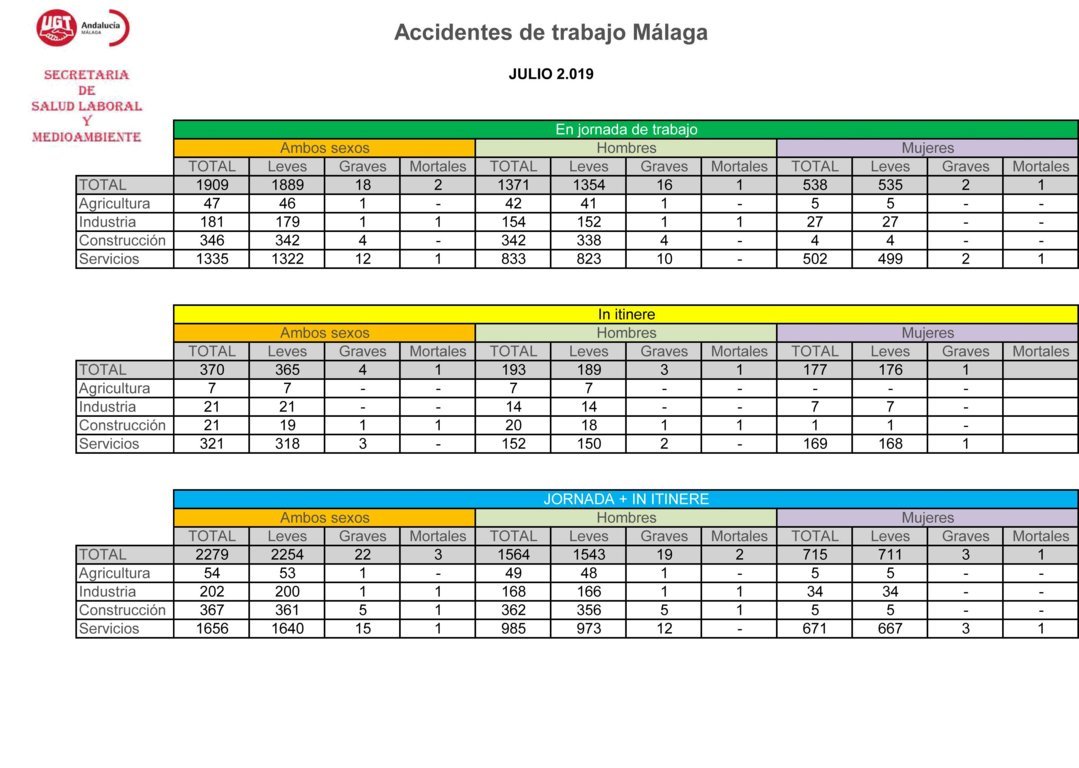 UGT denuncia, continua al alza el número de accidentes en este mes de julio.